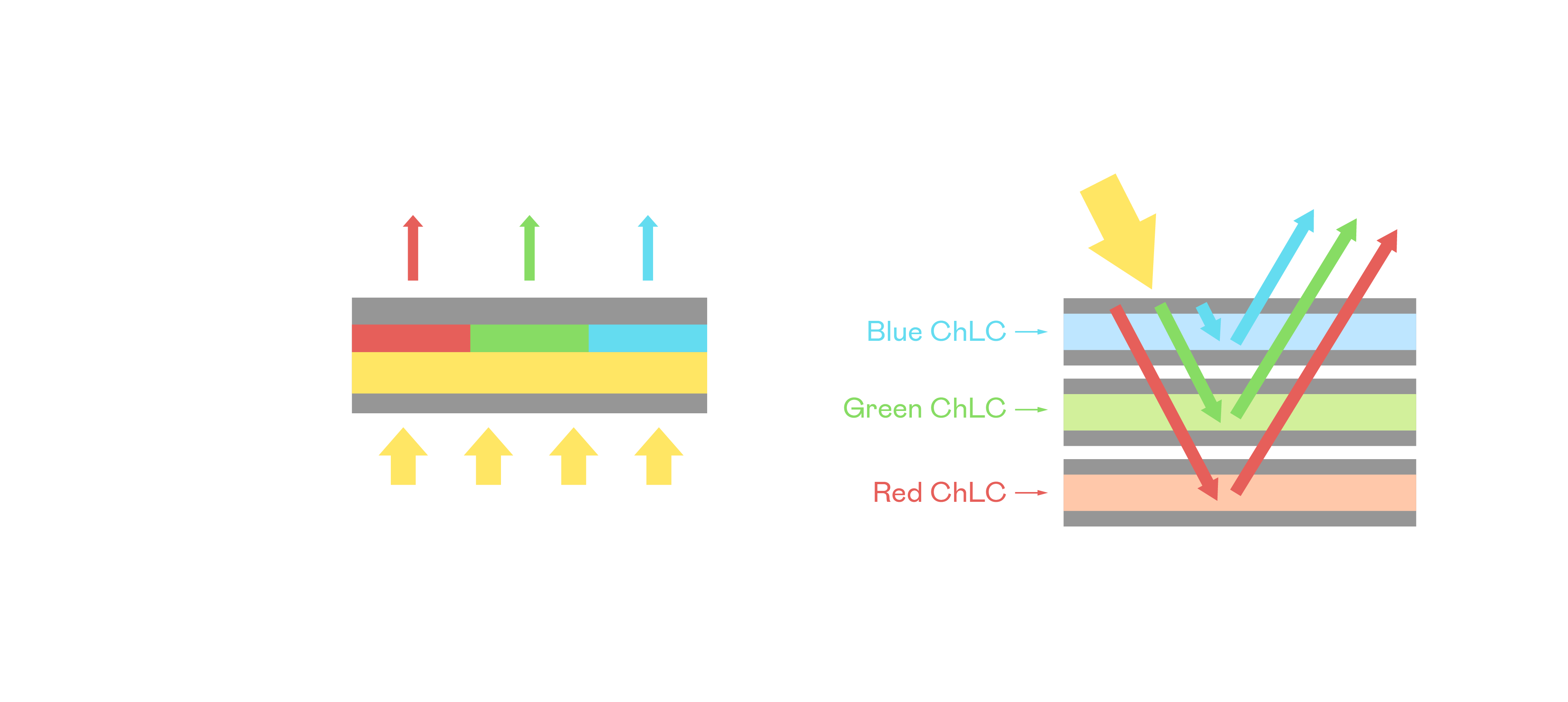 BG视讯胆固醇液晶显示器是由红、绿、蓝三层胆固醇液晶面板堆叠而成,并采用无彩色滤光片设计,减少环境光在反射过程中的损耗。